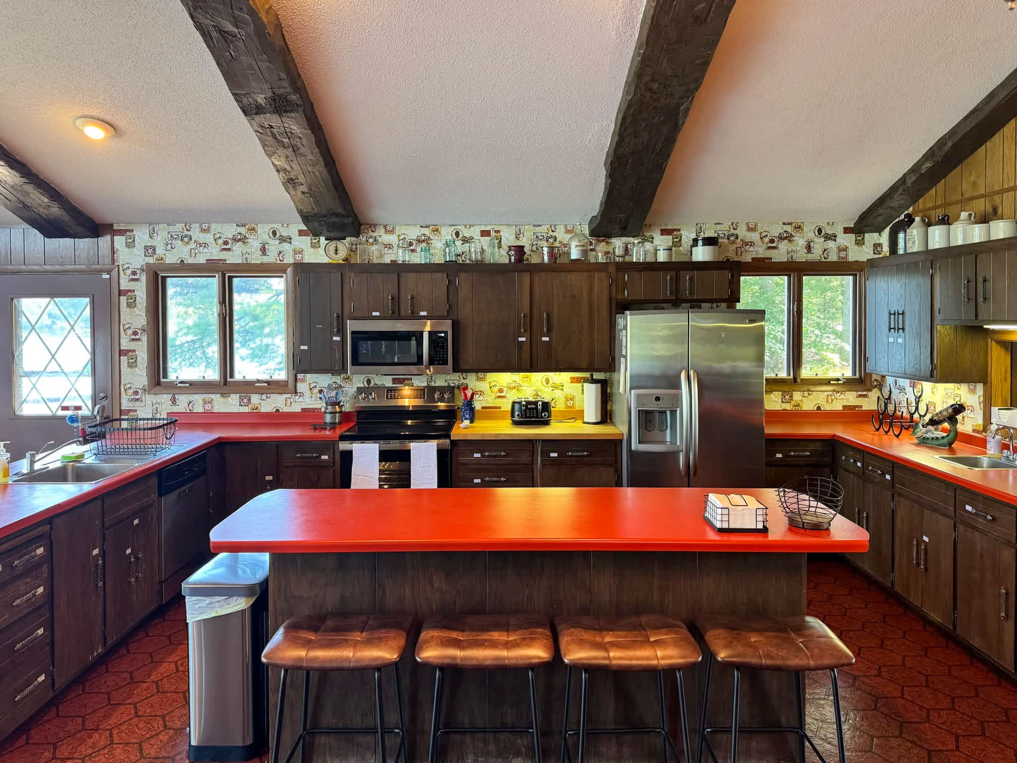 A great Northern Wisconsin vacation on a beautiful spring-fed lake. We enjoyed the cool water and warm fires inside and outside. Beautiful sunsets from the lodge windows. Lots of indoor and outdoor space to spread out.
